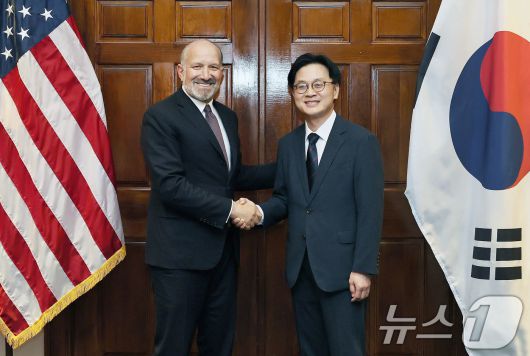 김정관 산업통상자원부 장관이 24일(현지시간) 미국 워싱턴 D.C. 상무부 회의실에서 하워드 러트닉 상무부 장관과 기념 촬영을 하고 있다. (산업통상자원부 제공. 재판매 및 DB 금지) 2025.7.25/뉴스1 |