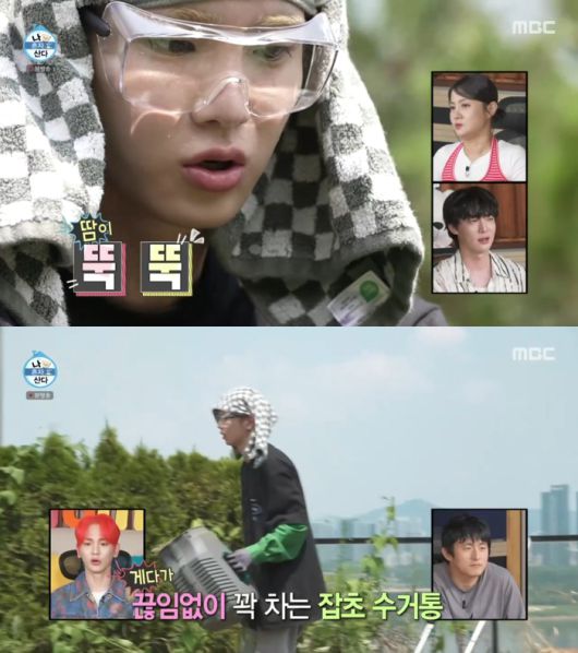 이날 키는 예초기를 꺼낸 후 긴 옷, 긴 바지, 양말까지 착용한 채 테라스로 향했다. 키는 잡초가 자라 정글이 된 테라스에 “왜 이렇게 난장판이 됐냐”며 당황했다.
