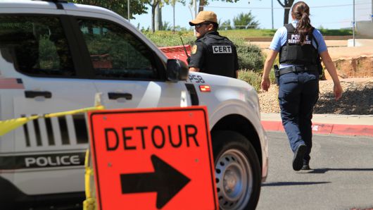 ▲ 25일 총격 사건 이후 폐쇄된 뉴멕시코대 캠퍼스 내부