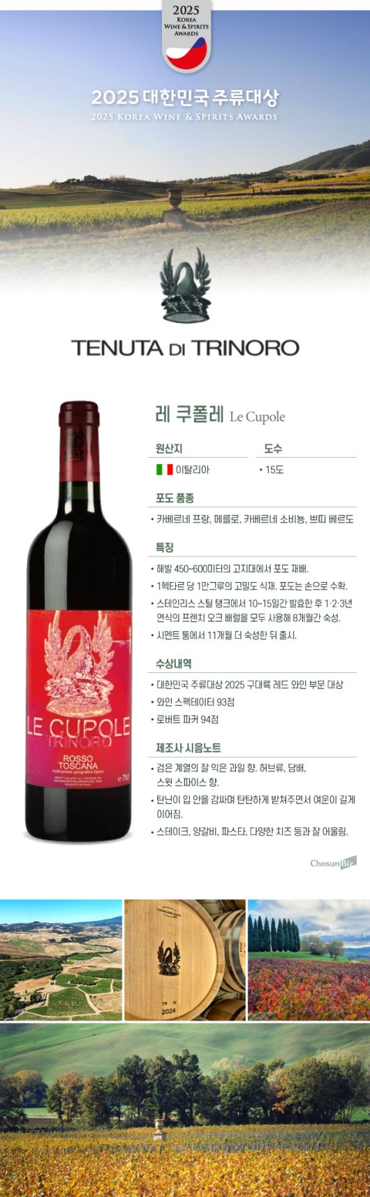레 쿠폴레는 테누타 디 트리노로의 세컨드 와인으로, 1995년 첫 생산 이후 매년 블렌딩 비율을 달리하며 각 빈티지의 개성을 반영해왔다. 카베르네 프랑, 메를로, 카베르네 소비뇽, 쁘띠 베르도를 조합한다. 스테인리스 스틸 탱크에서 발효한 뒤 1·2·3년산 프렌치 오크 배럴에서 8개월간 숙성한다. 이후 시멘트 통에서 11개월간 숙성한다.