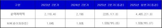 실제로 상반기 기준 신한은행의 NIM은 0.07% 하락하며 1.5%대로 내려갔지만, 순이자이익은 1.9% 상승해 4조 4652억원을 기록했다.