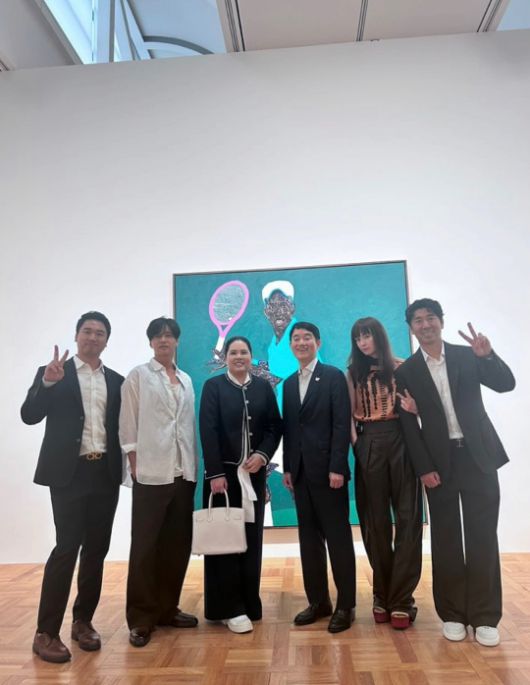 공개된 사진 속에는 원빈, 이나영 부부가 함께한 모습이 담겼다. 부부는 미술관 앞 전시작품 앞에서 지인들과 나란히 포즈를 취하고 있었다.