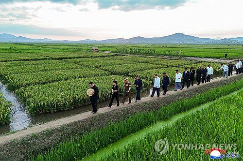 (평양 조선중앙통신=연합뉴스) 김정은 북한 국무위원장이 지난 24일 인민군 군부대 후방기지를 찾아 논에서 물고기를 기르는 '논판양어' 현장을 시찰했다고 조선중앙통신이 26일 보도했다. 2025.7.26