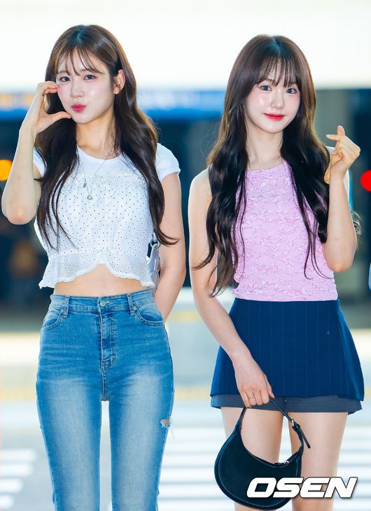 [OSEN=인천공항, 민경훈 기자] 그룹 우아(WOOAH)가 26일 오전 인천국제공항을 통해 해외 일정 참석차 출국했다. 이날 그룹 우아(WOOAH- 나나, 우연, 소라, 루시, 민서)는 해외 팬사인회 일정 참석 차 중국 상하이로 출국했다. 우아의 우연과 나나가 출국길에 포즈를 취하고 있다. 2025.07.26 / rumi@osen.co.kr
