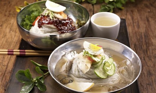 북한의 평양냉면. 북한의 냉면은 면이 검고 고명이 많다. 유네스코 누리집 |
