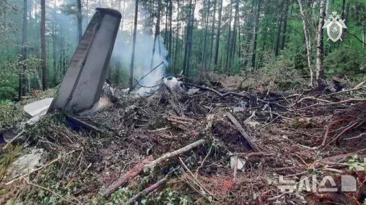 [틴다=AP/뉴시스] 러시아 수사 당국이 제공한 영상 사진에 24일(현지 시간) 시베리아 앙가라항공 소속 An-24 여객기가 러시아 극동 아무르주 틴다 남쪽 15㎞ 지점에 추락한 현장에 기체 잔해가 남아 있다. 2025.07.25. |