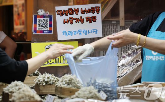 25일 오후 서울 동대문구 청량리종합시장에 민생회복 소비쿠폰 사용가능 점포 안내문이 붙어 있다. 2025.7.25/뉴스1 ⓒ News1 장수영 기자 |