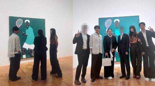 사진에는 한 전시회에서 원빈 이나영이 박인비와 함께 사진을 감상하는 모습이 담겼다. 두 사람이 함께 있는 모습은 웨딩화보 이후 10년 만에 포착돼 팬들의 큰 관심을 받았다.