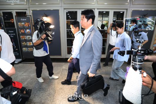 김건희 특검 관계자들이 25일 서울 서초구 아크로비스타 내 코바나컨텐츠 사무실 압수수색을 끝낸 뒤 떠나고 있다. 정효진 기자 |