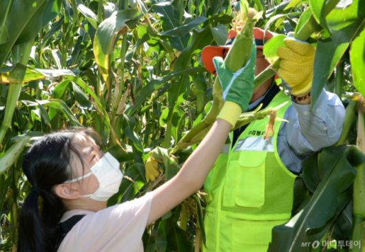 울산 중구 성안동 야구장 인근에서 열린 사랑의 옥수수 나눔행사에서 어린이들이 옥수수따기 현장체험을 하고 있다. /사진=뉴시스 |