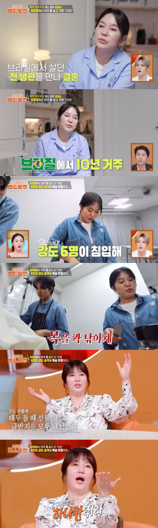 아이들을 모두 브라질에서 태어났다는 그는 당시 목숨이 왔다갔다 했던 상황도 전했다. 아이들이 어린 시절, 자택에 강도 6명이 침입했던 것. 아찔한 상황을 회상한 김금순은 "엘리베이터에서 내리자마자 목을 낚아채더라"고 이야기했다.