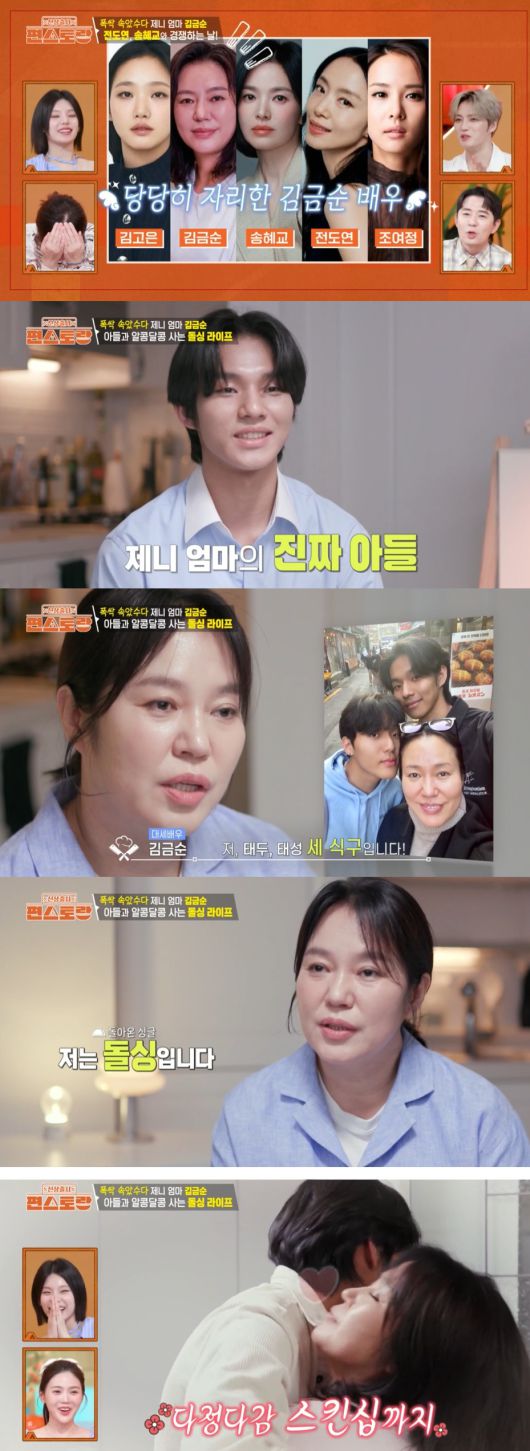 잘생긴 두 아들을 최초 공개한 김금순은 둘째 아들이 미국 유학 중이라며 현재는 첫째 아들과 같이 살고 있다고 전했다. 첫째 아들은 다정다감하게 엄마를 챙기며 뽀뽀까지 해 모두의 놀라움을 자아냈다.