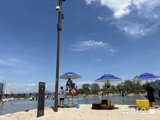 도심 속 워터파크로 불리는 한강 수영장은 시민들의 대표적인 피서지 중 하나다. 이날 오후 1시께 기자가 찾은 서울 송파구 잠실한강공원 수영장은 가족 단위 방문객들로 활기를 띠었다. 얕은 수심의 야외풀에서는 유아들이 튜브를 타고 둥둥 떠다니거나 물총을 쏘며 물놀이를 즐겼고, 분수대가 설치된 유아풀장에서는 아이들의 웃음소리가 끊이지 않았다.