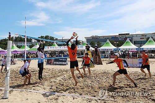 (동해=연합뉴스) '제21회 동트는동해배 전국 남·여 비치발리볼 대회'가 26일 강원 동해시 망상해수욕장 특설경기장에서 열리고 있다.