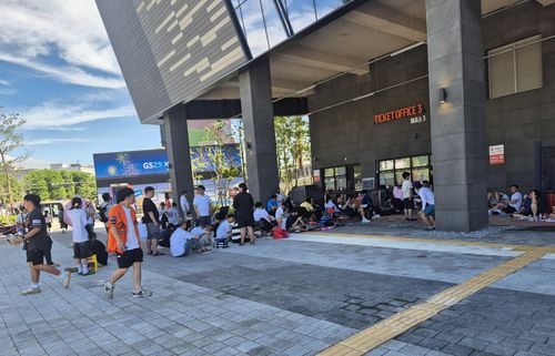 표를 구하지 못한 수많은 팬은 돗자리, 간이의자, 양산, 손 선풍기 등으로 중무장하고 긴 줄을 섰다.