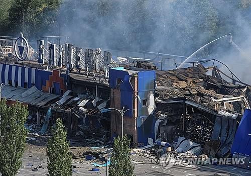 러시아 미사일 공격으로 불이 난 우크라이나 드니프로 지역의 쇼핑몰 |