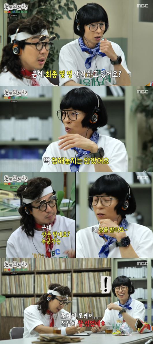 이에 하하가 "근데 상을 주지 않냐"라며 의아함을 드러냈다. 유재석은 "참가하고 상을 못 받는 분도 있는 거다. 서바이벌하고 다르다. 서바이벌은 탈락을 한다"라고 설명했다. 하하는 "적절히 잘 섞었다"라며 가요제 진행 방식에 일침을 날렸다.