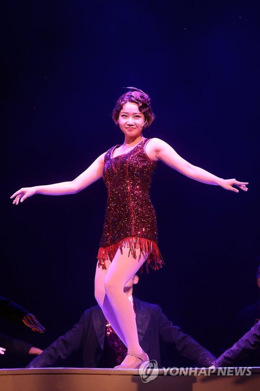 뮤지컬 '브로드웨이 42번가' 프레스콜이 열린 24일 오후 서울 송파구 샤롯데씨어터에서 출연 배우들이 하이라이트 시연을 하고 있다. 뉴시스 |