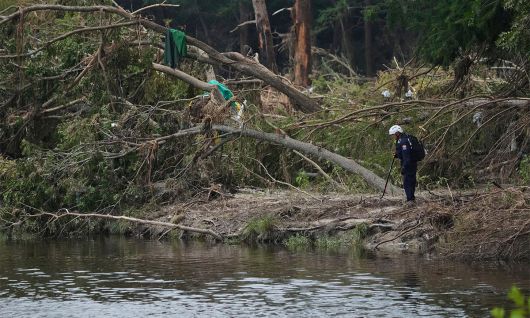 지난 3일(현지시간) 미국 텍사스주에서 갑작스러운 홍수로 130여명이 사망한 뒤 12일 수색팀이 케르빌에서 당시 범람했던 과달루페 강 유역을 수색하고 있다. 미국에선 지난해에 비해 7월 한 달에만 두 배의 홍수가 발생했다. 케르빌=AP연합뉴스 |