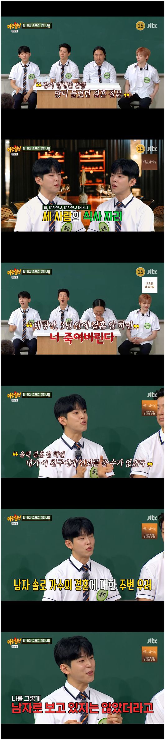26일 방영한 JTBC 예능 ‘아는 형님’에서는 가수 조째즈, 팀, 폴킴, 강다니엘이 등장했다.