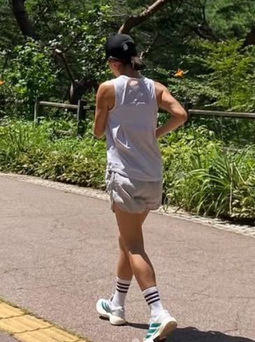 또 다른 사진에는 정혜영이 산책로를 힘차게 달리는 뒷모습이 담겼는데 반전의 근육질 몸이 시선을 사로잡는다. 꾸준한 운동 루틴을 실천 중임을 알 수 있다.