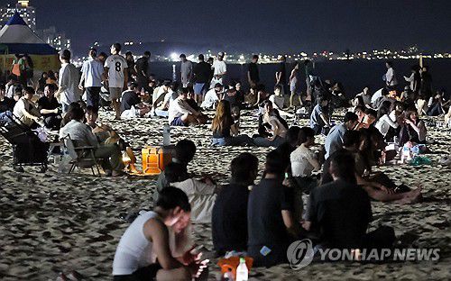 (강릉=연합뉴스) 유형재 기자 = 27일 0시 무렵 강원 강릉시 경포해수욕장 백사장이 피서 절정기를 맞아 열대야에 지친 피서객들이 몰려 북적이고 있다.