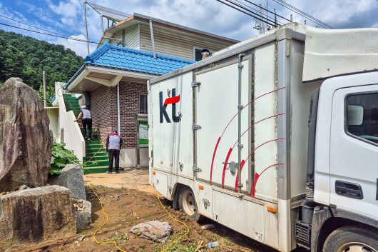KT는 지난 23일 이 지역에 차량 진입로가 확보된 이후 통신 장비 복구 작업을 진행하고 마을에 전력을 공급해 냉방기기 및 냉장고 등 가전제품 가동을 도왔다.