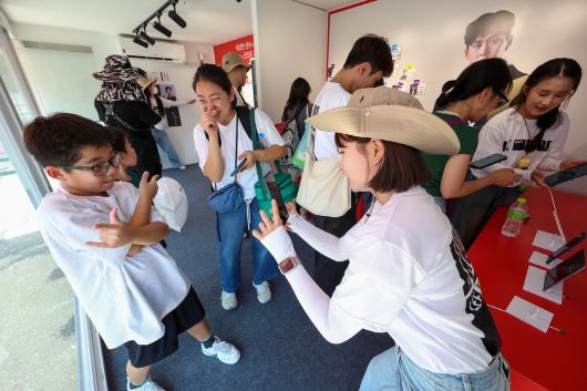 삼성전자 '갤럭시 Z 폴드7'과 'Z 플립7'의 신규 AI 기능을 체험할 수 있는 공간도 마련됐다. 관람객은 응원 메시지를 작성하고 기념 사진을 찍은 뒤, AI 이미지 변환 기술을 활용해 출력된 사진을 기념품으로 받을 수 있었다.