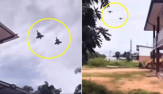소셜미디어에 확산 중인 태국 그리펜 전투기 비행 장면 - 캄보디아와의 무력 충돌 이후 태국 공군이 JAS-39 그리펜 전투기를 실전에 투입한 가운데, 소셜미디어에는 해당 전투기 2대(노란색 원)가 민가 인근 상공을 저고도로 비행하는 모습이 담긴 영상이 공유되고 있다. 출처=인스타그램 |