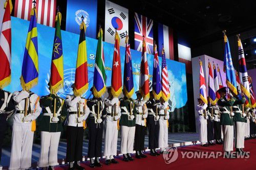 (고양=연합뉴스) 이정훈 기자 = 27일 경기도 고양시 킨텍스에서 열린 유엔군 참전의 날 기념식에서 참전국기가 입장하고 있다. 2025.7.27 uwg806@yna.co.kr ▶제보는 카카오톡 okjebo▶연합뉴스 앱 지금 바로 다운받기~▶네이버 연합뉴스 채널 구독하기 <저작권자(c) 연합뉴스, 무단 전재-재배포, AI 학습 및 활용 금지><저작권자(c)연합뉴스. 무단전재-재배포금지.>