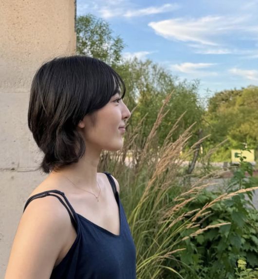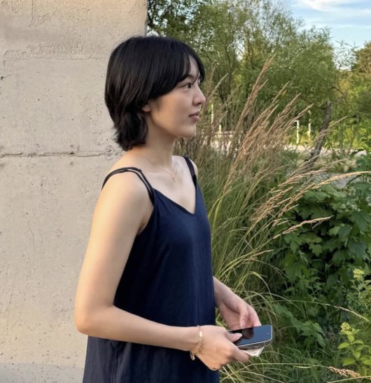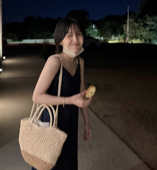 짧게 자른 단발머리와 내추럴한 미소는 특유의 청순한 분위기를 한껏 끌어올렸으며, 해 질 녘의 따뜻한 햇살과 어우러져 한 편의 영화 같은 감성을 자아낸다. 특히 마지막 사진에서는 손에 빵을 든 채 미소 짓고 있는 모습이 담겨 있어 사랑스러움을 더했다.