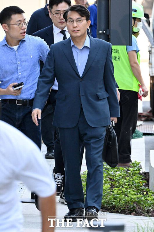 [더팩트ㅣ남용희 기자] 공천 개입 의혹을 받고 있는 윤상현 국민의힘 의원이 27일 오전 서울 종로구 KT 광화문 빌딩 웨스트에 마련된 김건희 특검(특별검사 민중기)에 출석하고 있다.