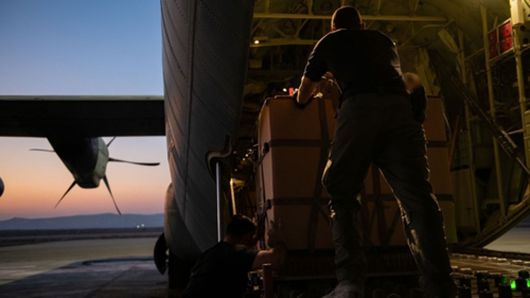 ▲ 이스라엘군 수송기에 가자지구 공중 투하를 위한 구호품을 싣는 모습