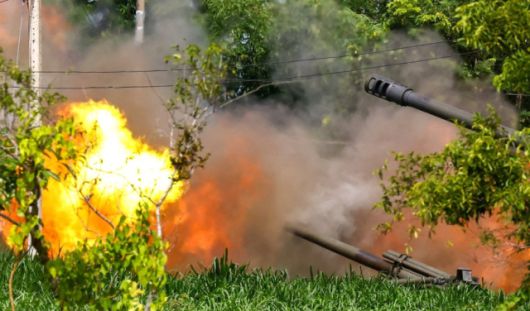 지난 25일(현지시간) 태국 동부 수린주 국경 지대에서 태국군 야포가 캄보디아를 향해 포격을 가하고 있다. [사진=연합뉴스] |