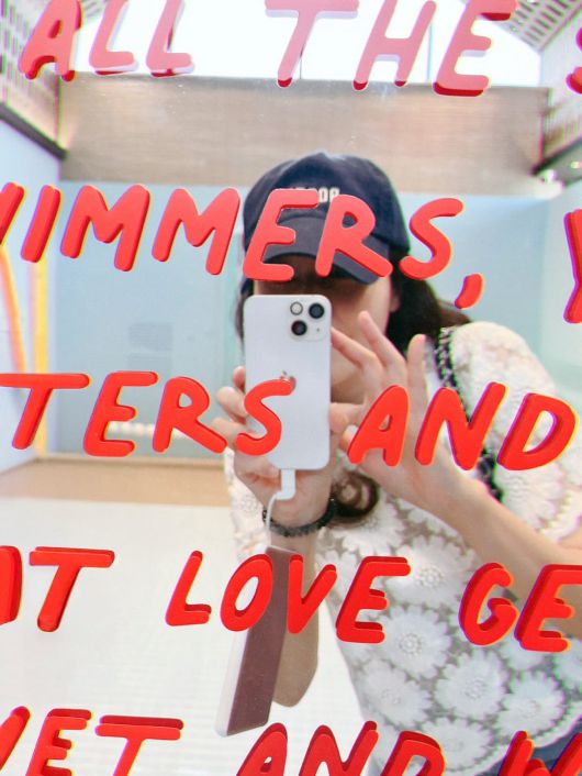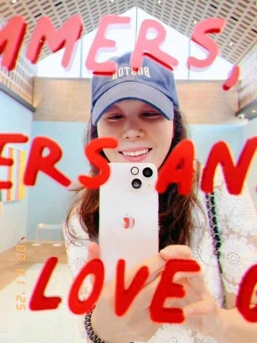 사진 속 김하늘은 빨간 레터링이 새겨진 거울을 배경으로 셀카를 찍고 있다. 모자를 푹 눌러 썼지만 감출 수 없는 미모와 해맑은 미소는 여전히 팬심을 자극하기 충분했다.