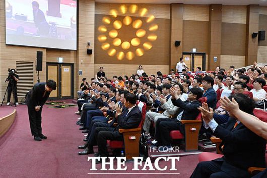이 대표는 수락연설에서 "당과 대한민국을 위해 봉사할 기회를 얻게 돼 감사하고 영광이다"라며 "고된 길을 걷더라도 국민에게 믿을 수 있는 미래를 보여드려야 한다. 이를 위해 우리 내부의 관성과 모순을 끌어내고 새로운 열정을 채워야 한다"고 밝혔다.