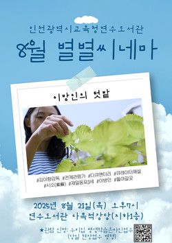 (인천=국제뉴스) 이병훈 기자 = 인천시교육청연수도서관은 8월 '별별씨네마'에서 김이향 감독의 다큐멘터리 영화 '이방인의 텃밭'을 상영한다고 밝혔다.