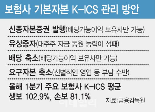 일각에선 보험업계가 이번 규제 대응에 큰 어려움은 없을 것으로 내다봤다. 보험업계 한 관계자는 “기본자본이 부족한 보험사는 영업을 축소하는 등 전략적 선택이 필요한 시점이다”며 “대응이 어려운 보험사는 금융당국과 협의를 통해 경과조치를 신청할 수도 있다”고 설명했다.