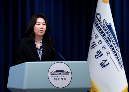 강유정 대통령실 대변인이 27일 서울 용산 대통령실 청사에서 현안 브리핑을 하고 있다. 연합뉴스 |