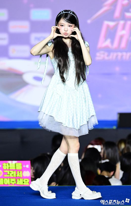 (엑스포츠뉴스 고양, 박지영 기자) 27일 오후 경기도 고양시 킨텍스에서 '2025 SBS 가요대전 Summer' 블루카펫 포토월이 진행됐다. 이날 행사에 참석한 아일릿 모카가 포토타임을 갖고 있다.박지영 기자 jypark@xportsnews.com