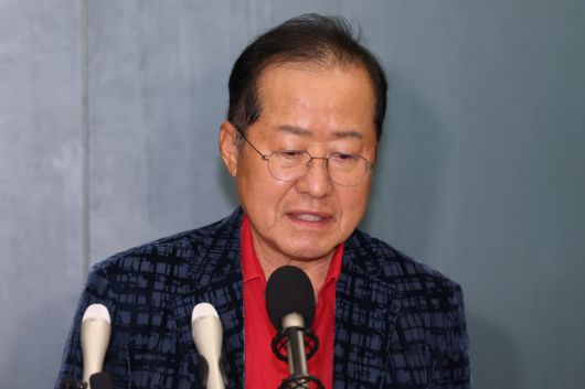 국민의힘 대선 후보 경선에서 탈락한 뒤 정계 은퇴를 선언하고 하와이에 체류했던 홍준표 전 대구시장이 17일 인천 중구 인천국제공항 제1터미널을 통해 귀국해 발언하고 있다. 2025.06.17. [인천공항=뉴시스] |