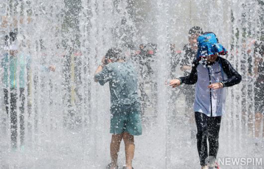 [서울=뉴스핌] 정일구 기자 = 전국 대부분 지역에 폭염 특보가 내려진 27일 서울 종로구 광화문광장 바닥분수에서 어린이들이 물놀이를 하며 더위를 식히고 있다. 2025.07.27 mironj19@newspim.com |