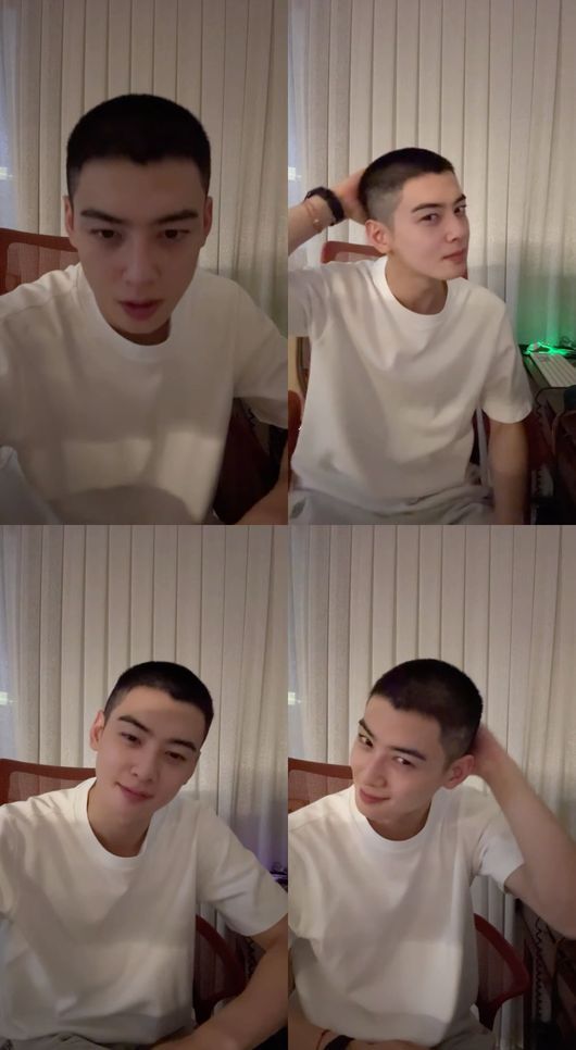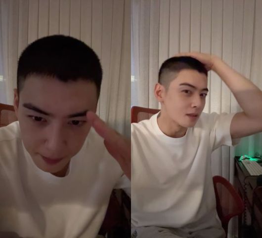 [OSEN=지민경 기자] 그룹 아스트로의 차은우가 입대를 하루 앞두고 머리를 짧게 삭발한 모습을 공개했다.