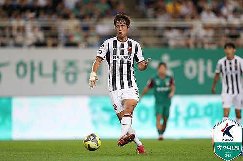 (대전=연합뉴스) 프로축구 K리그1 FC서울의 센터백 김주성이 27일 대전월드컵경기장에서 열린 대전하나시티즌과의 K리그1 24라운드 원정 경기에서 패스하고 있다. 2025.7.27 [한국프로축구연맹 제공. 재판매 및 DB 금지]