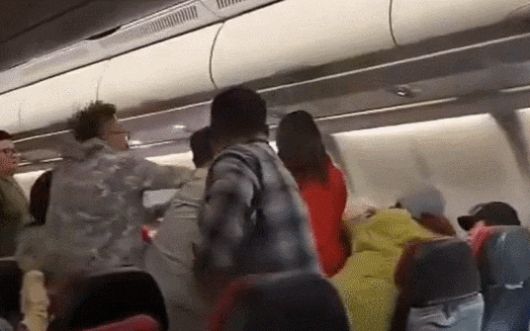 여성들의 태도에 화가 난 남성은 “멍청하다” “닥쳐라” 등 폭언을 내뱉었다. 이 말을 들은 여성들은 격분했고 몸싸움이 시작됐다. 다른 탑승객이 촬영해 공유한 것으로 추정되는 영상을 보면, 모자를 쓴 한 여성이 좌석을 밟고 올라가 앞자리 남성에게 주먹을 휘두르는 장면이 나온다. 남성은 기내 식판 아래로 몸을 숨기며 공격을 피한 것으로 전해졌다.