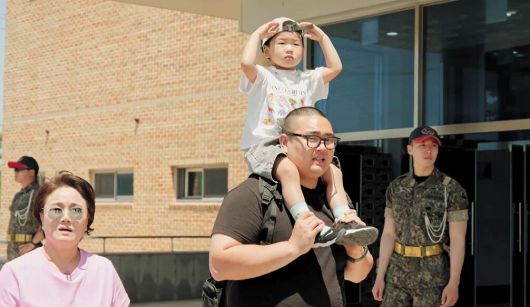 손보승은 아들을 목말을 태운 채 “아빠 군대 간다!”라고 외치며 입소식이 열리는 훈련소로 향했다. 훈련병들을 맞이하는 군악대 연주에 엄마 이경실도 “이훈이(손보승의 아들)가 빨리 오라고 밴드가 있네”라며 분위기를 띄웠다. 훈련소 앞에는 아이스크림을 파는 푸드트럭까지 있다. 달라진 입대 풍경에 김국진은 “지금까지는 축제인데?”라며 놀라워했다. 아빠의 어깨 위에 탄 아들이 나타나자 선배 장병들이 환호했고, 아들은 들뜬 표정을 지었다.