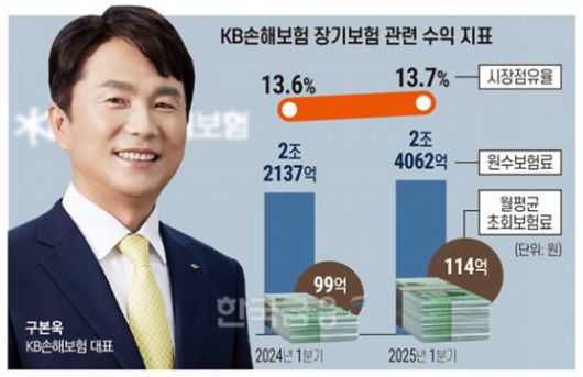 KB손보는 장기보험 시장에서 대형 5개사(삼성화재·DB손해보험·현대해상·메리츠화재·KB손해보험) 중 시장점유율이 13.7%로 낮은 수준이지만, 전년 동기 대비 0.1%p 성장하며 꾸준히 외형 확대를 이어가고 있다.