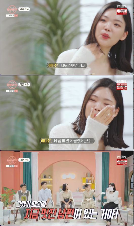 도형이 신혼 물건들을 보며 힘들었다는 이야기를 이어가던 중, 이를 듣던 이다은은 "저도 신혼집에서 제 짐 빼면서 울었거든요. 미련이 아니라 복합적인 감정으로..."라며 결국 눈물을 터뜨렸다.