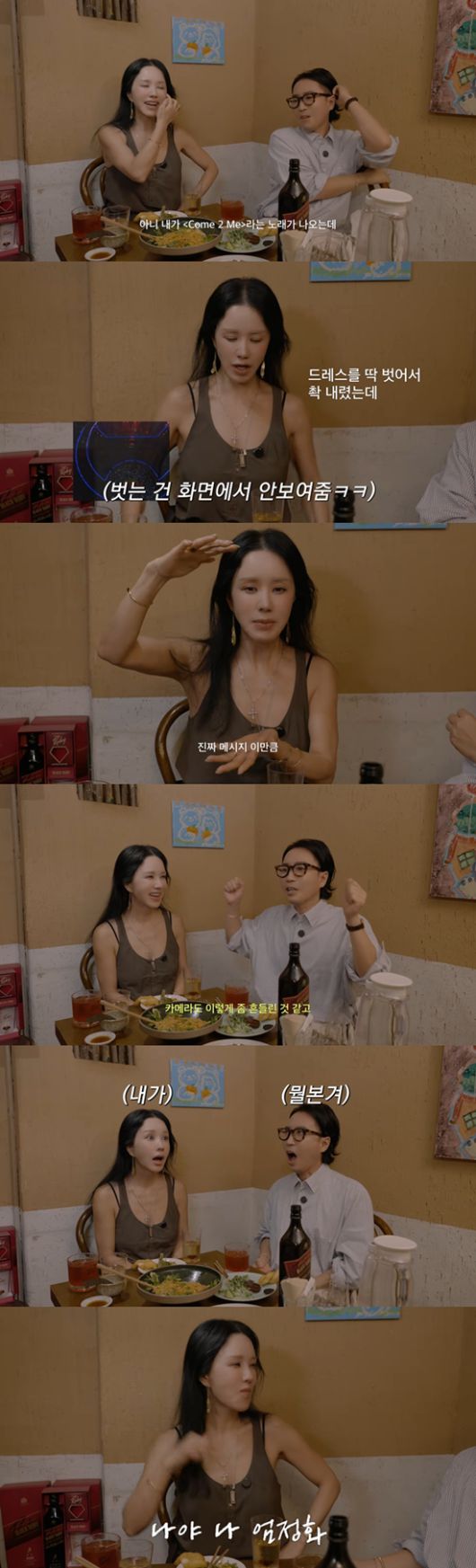 영상에서 엄정화는 정재형과의 추억을 회상하며 "내가 'Come 2 Me'라는 노래가 나오는데 의상을 어떻게 할까 막 가사 그대로 '나는 널 기다린다', 너를 기다리는데 옷을 정장을 입고 있을 순 없지 않나. 그냥 란제리 패션 입으려고 했다"라고 떠올렸다.