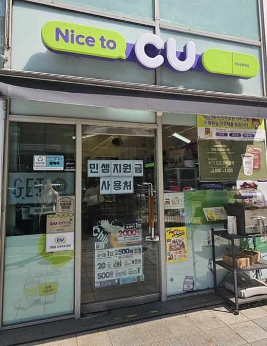 BGF리테일이 운영하는 CU의 한 매장에 민생회복 소비쿠폰 사용처라는 안내문이 붙어 있다./BGF리테일